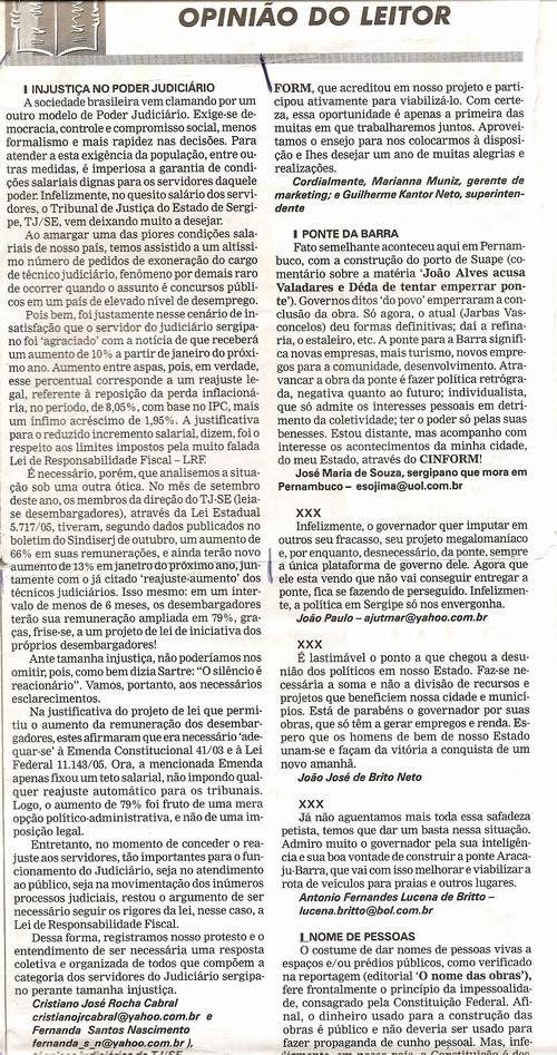 No final de 2005, militantes do MSPL fizeram a primeira denúncia pública da categoria contra as condições vivenciadas pelos servidores no TJSE. A denúncia foi feita no Jornal Cinform e apresentava um protesto contra os baixos salários pagos aos servidores efetivos.