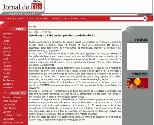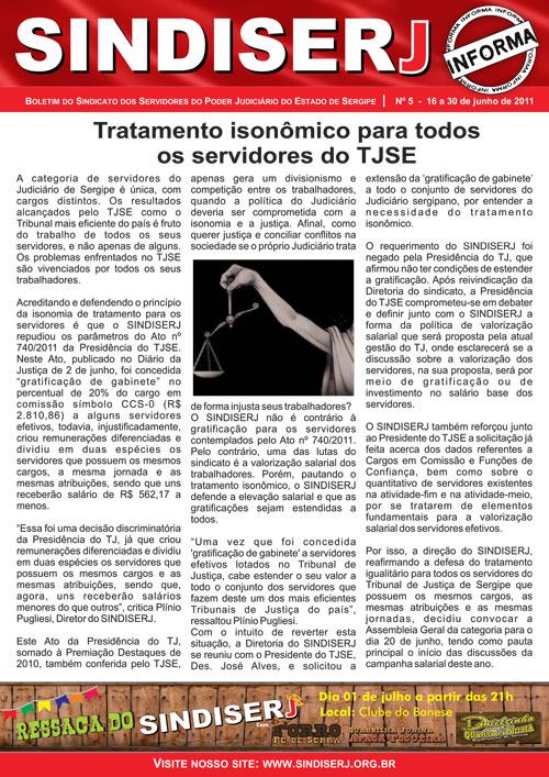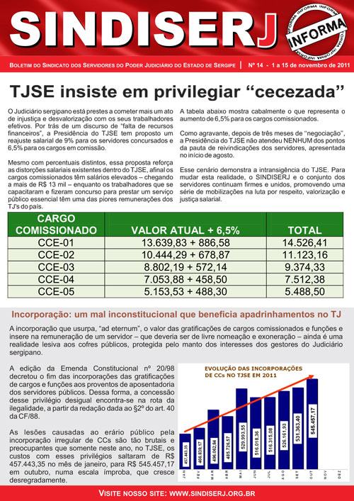 No mês de junho, a Presidência do TJSE anuncia a extensão da gratificação de gabinete apenas a alguns servidores vinculados ao Pleno. A direção do sindicato posicionou-se taxativamente contrária, sustentando que tal medida criaria mais uma distorção entre os próprios servidores efetivos e através de denúncia na imprensa a gestão do TJSE foi pressionada, voltando atrás e revogando o seu ato 740/2011.