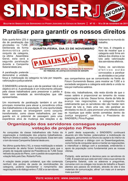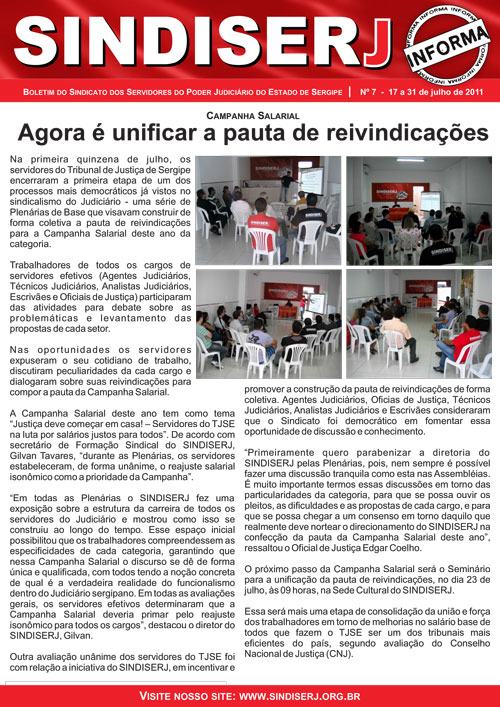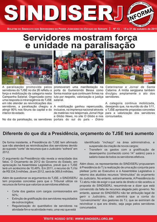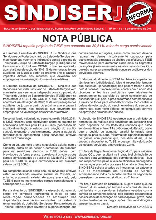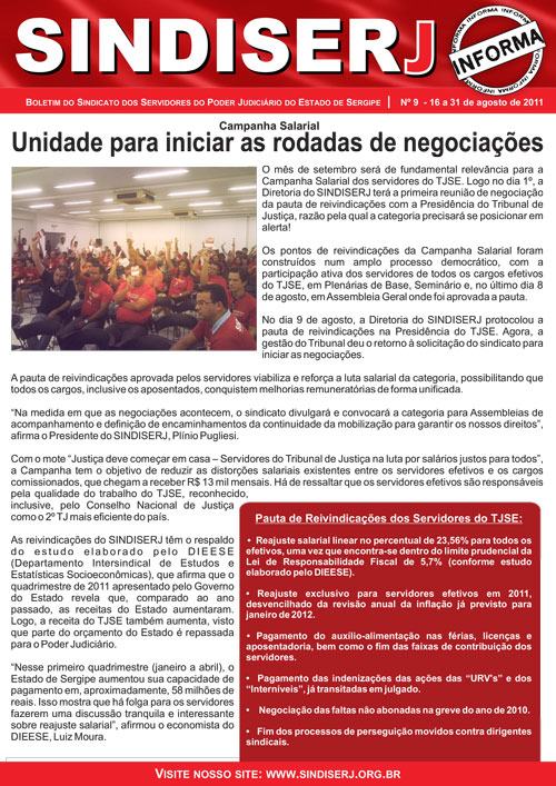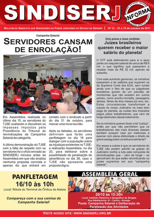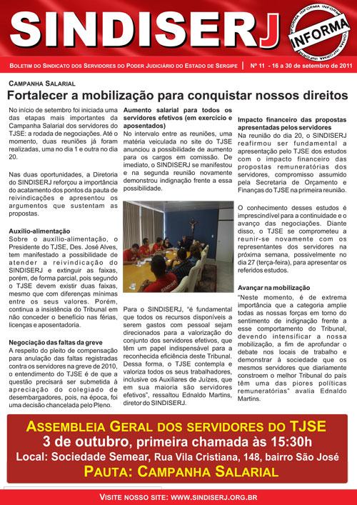 Com o susto da tentativa de valorização dos cargos em comissão, por parte da gestão do TJSE, os servidores realizam Assembleia Geral, em junho, no Instituto Histórico e Geográfico de Sergipe e deflagram a Campanha Salarial de 2011, “Justiça deve começar em casa!” A campanha trouxe inovações na organização das lutas dos servidores do TJSE. A pauta de reivindicações passou a ser construída em plenárias de base, coletando os anseios de todos os cargos efetivos; também foi produzido pela primeira vez um plano de comunicação para a campanha, que compreendia uma sequência de ações através de panfletos, camisas, adesivos, outdoors, vídeos em TV, dentre outros, com o propósito de divulgar as lutas dos servidores a um público mais ampliado, entre os próprios trabalhadores do TJSE, a sociedade sergipana e a imprensa.