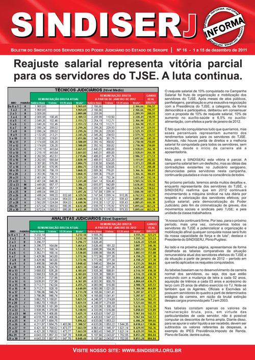 Somente no dia 22 de novembro, às vésperas de uma nova paralisação programada pela categoria, o Presidente do TJSE, des. José Alves, melhora a sua proposta em relação à pauta da categoria, o que consistiu em uma contraproposta de 10% de reajuste salarial para todos os cargos efetivos, apenas 6,5% para os cargos em comissão, 10% de aumento no auxílio-saúde e 6,5% no auxílio-alimentação. Em Assembleia Geral realizada nesse dia, os servidores decidiram consensuar com proposta apresentada pelo TJ e declaram encerrada a campanha salarial, superando os impasses nos desfechos das campanhas salariais dos anos anteriores.