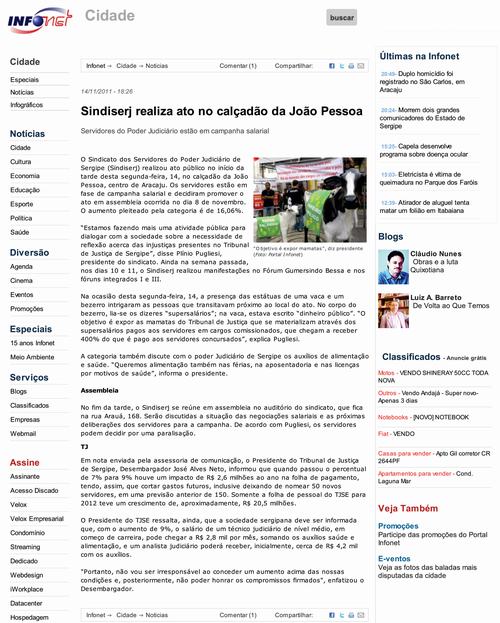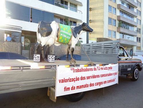 Na campanha salarial, a Presidência do TJ mantinha-se intransigente e se recusava a negociar as reivindicações apresentadas pela categoria. A proposta do TJ previa reajustar os salários apenas em 7%. Diante dos impasses, no dia 26 de outubro, os servidores paralisaram as atividades, atingindo 80% de adesão em fóruns da capital e diversas sedes de comarcas e distritos do interior. O ato chamou a atenção por sua criatividade. O uso de uma vaca, simbolizando os altos gastos públicos com “mamatas” destinadas a poucos privilegiados, causou repercussão em âmbito nacional. Essa foi a primeira vez que uma atividade dos servidores do TJSE foi divulgada nacionalmente, chegando a ser exibida em telejornais da Rede Globo de televisão.