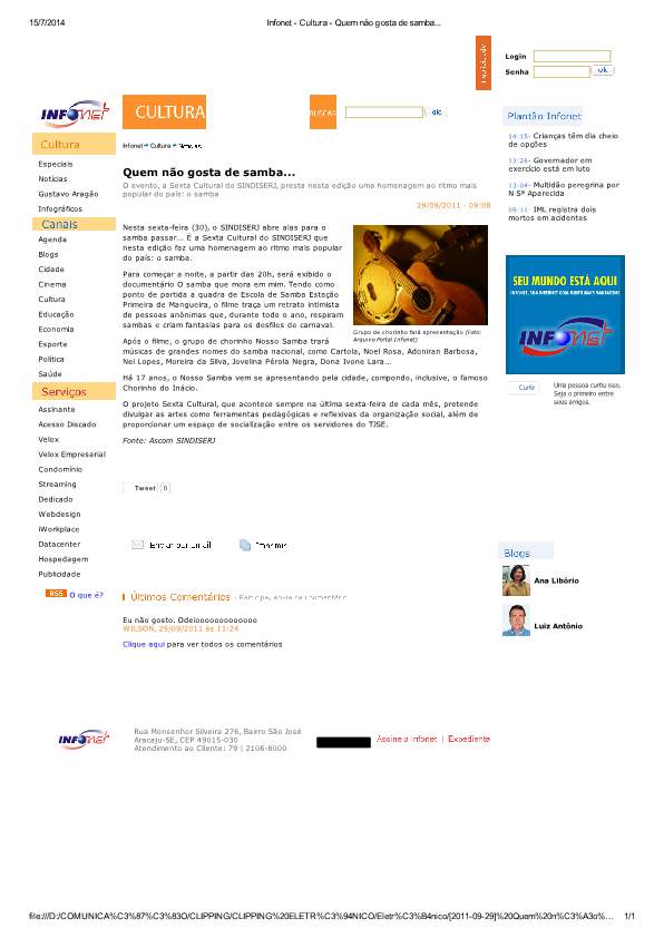 Mais uma vez o sindicato cumpre a tradição iniciada já alguns anos antes e, no dia 7 de setembro, participa do Grito dos Excluídos, na capital sergipana, levando para as ruas as bandeiras de protesto dos servidores do TJSE contra a procrastinação no pagamento das indenizações das URVs e dos interníveis, e ainda contra a atitude do TJSE de criminalizar greve e movimentos sociais.