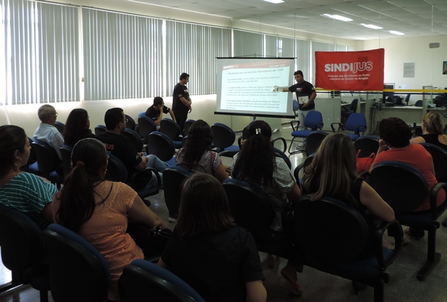 Nas relações entre a gestão do TJSE e o sindicato houve um avanço significativo. Nesse ano, pela primeira vez, os servidores do TJSE puderam ser representados pela direção do sindicato na Reunião de Análise Estratégica (RAE), espaço responsável pela elaboração e acompanhamento da execução do Planejamento Estratégico do TJSE. A participação da entidade sindical no Planejamento Estratégico havia sido demandada pela categoria no CNJ em 2012.