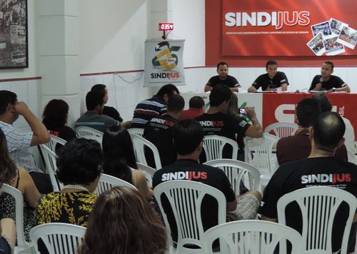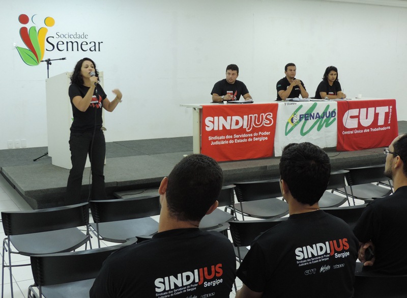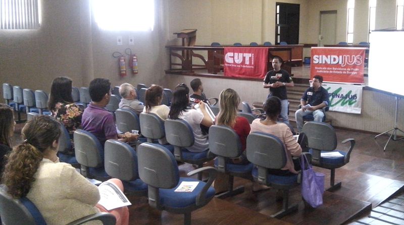 O Sindijus prossegue a tática de ampliação das relações além do mundo do trabalho e mantém sólidas as articulações com o movimento estudantil, nas universidades. No mês de maio essas articulações resultam na participação do sindicato, como uma das entidades palestrantes, no debate sobre a democratização do Judiciário, com alunos do curso de Direito, na Universidade Tiradentes, em Aracaju.