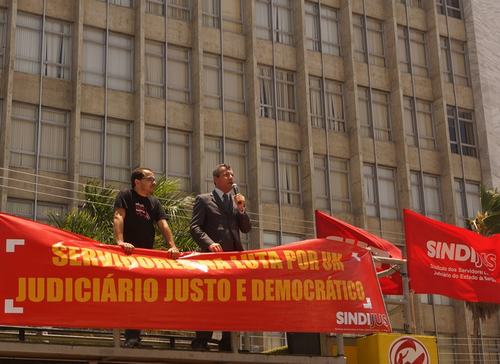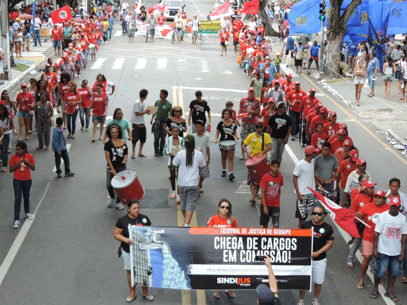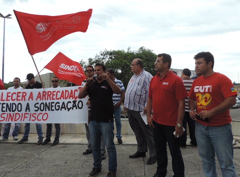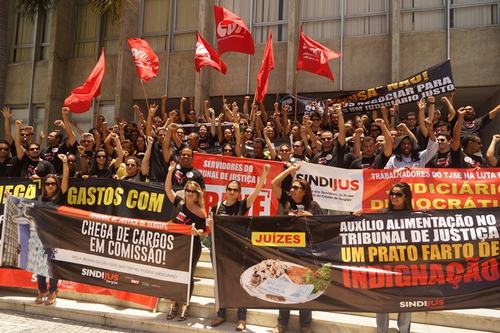 Na conjuntura estatual, o Governo do Estado atrasa o pagamento dos salários dos servidores públicos vinculados ao Poder Executivo, sob a justificativa da falta de recursos. O contraponto é feito pela CUT, que realiza um ato público com diversos sindicatos, entre eles o Sindijus, em frente ao Palácio do Governo do Estado para exigir transparência nas contas públicas e corte de privilégios.