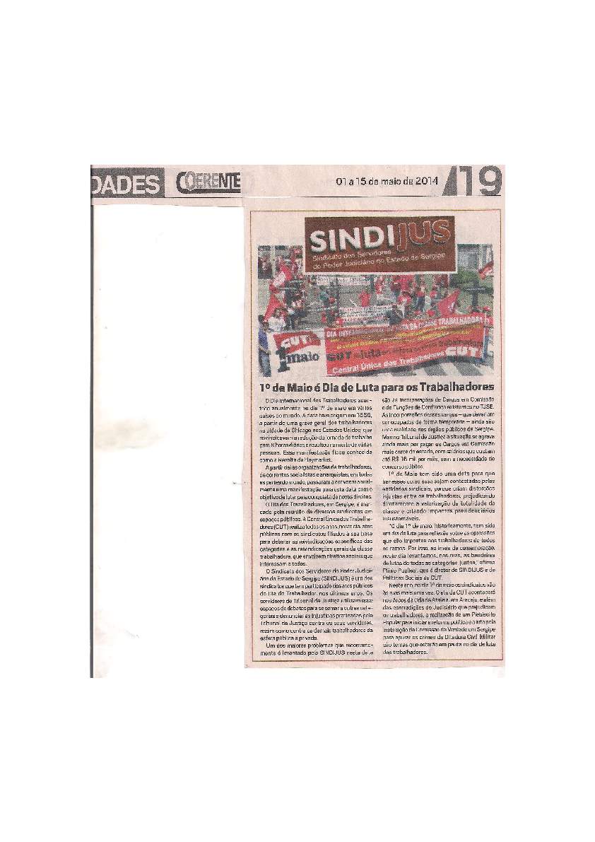 Em maio de 2014, a organização sindical dos servidores do TJSE recebe mais um reconhecimento público. O Sindijus é homenageado pelo Conselho Regional de Serviço Social (CRESS) – 18ª Região – durante as comemorações da Semana do Assistente Social, devido a atuação do sindicato em defesa da profissão dos Assistentes Sociais em Sergipe.