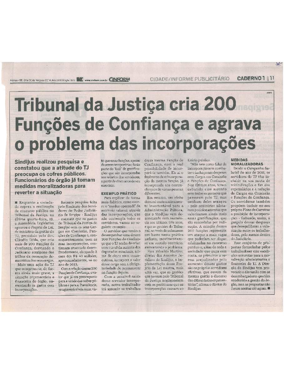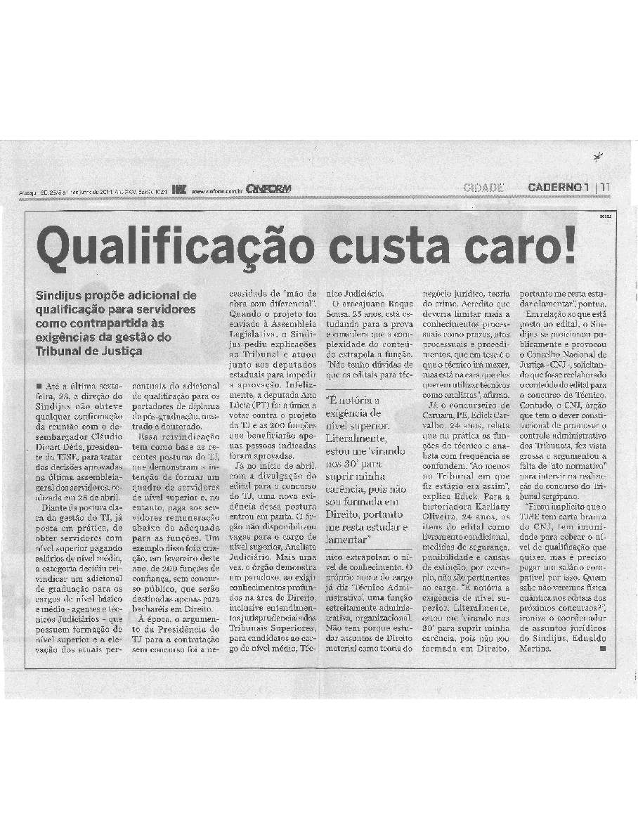 Nesse período, a conjuntura sergipana estava sendo contagiada pela abertura do concurso do TJSE para cargos de Técnicos e Analistas. Em meio à movimentação que afetava a rotina, principalmente, do universo estudantil, o sindicato faz uma análise sobre o edital do concurso do tribunal e apontou desproporcionalidades em relação aos cargos ofertados e o nível de complexidade do conhecimento exigido. Para o cargo de Técnico Judiciário, nível médio, o edital chegava a exigir conhecimento de jurisprudências dos Tribunais Superiores.