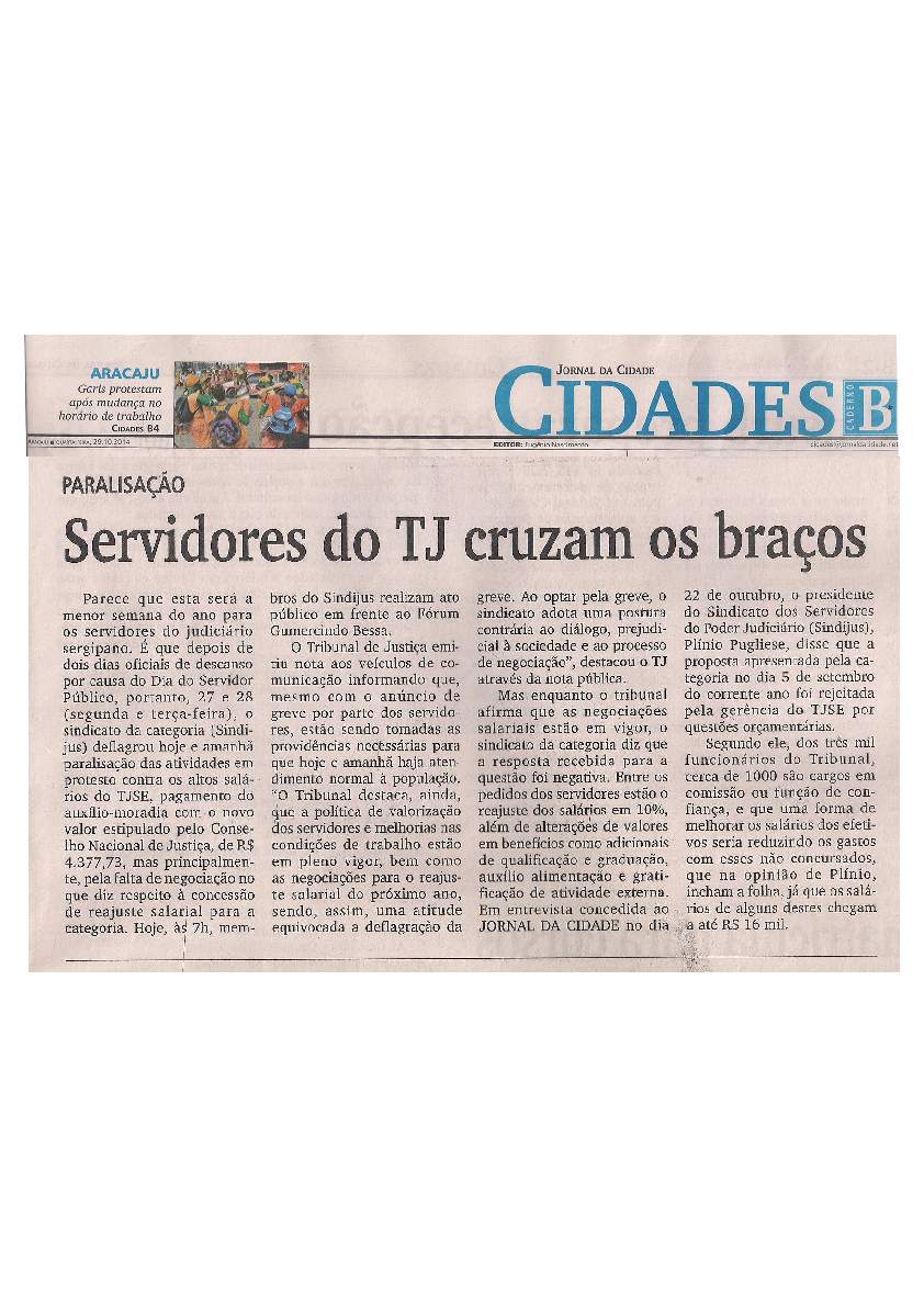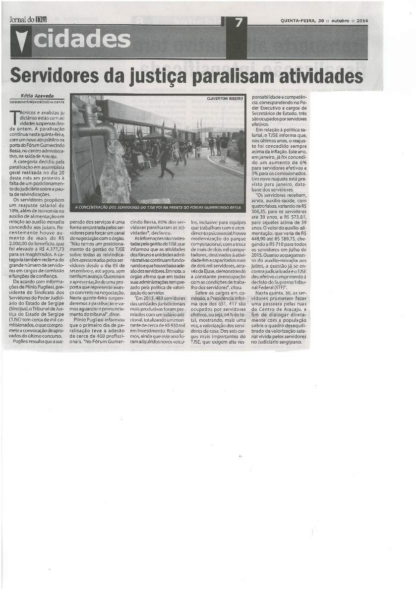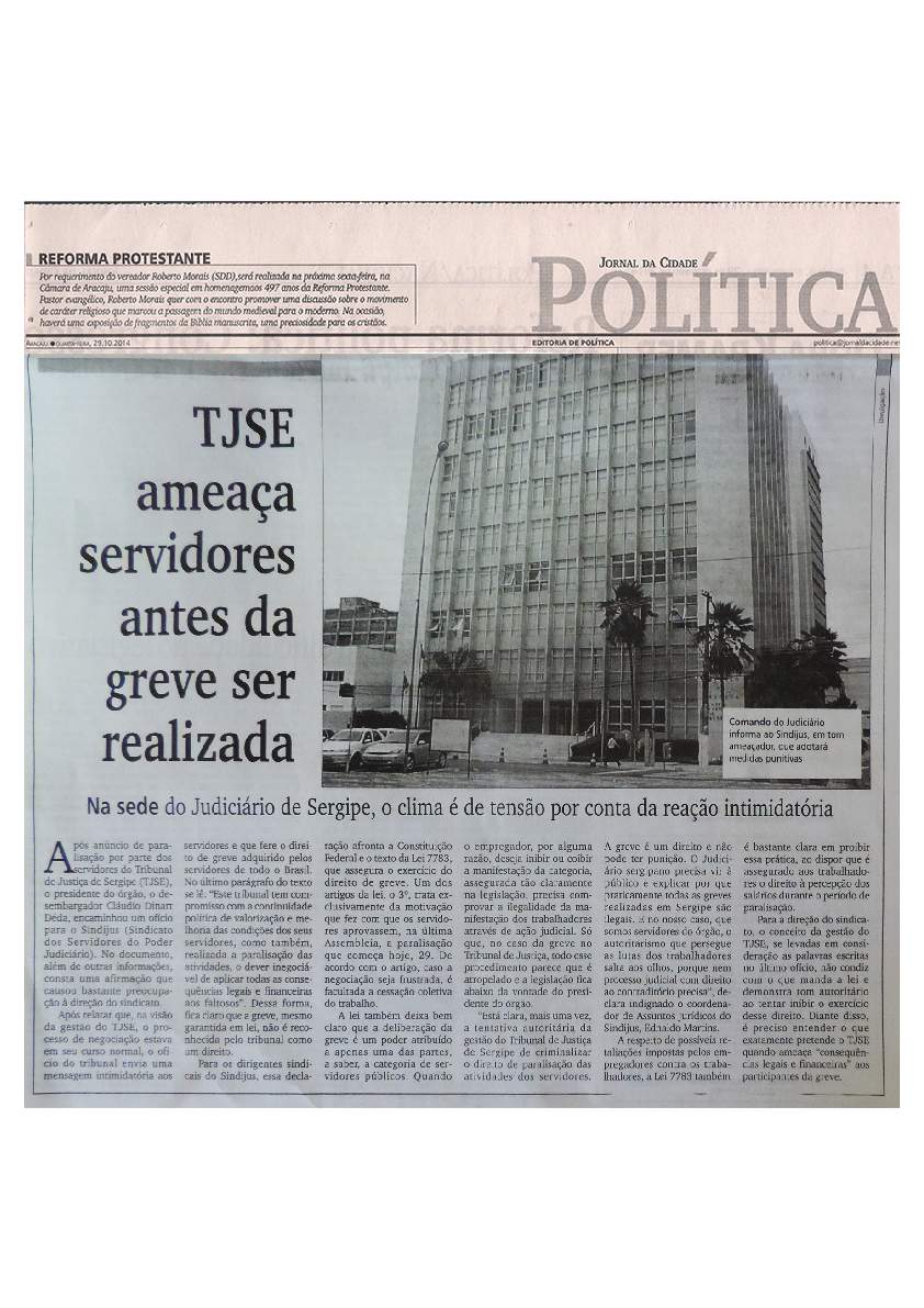 Nos dias 29 e 30 de outubro, toda a imprensa sergipana é levada a cobrir a paralisação dos servidores do TJSE, impulsionada pela repercussão negativa que a aprovação do Auxílio-Moradia estava tendo junto à população.