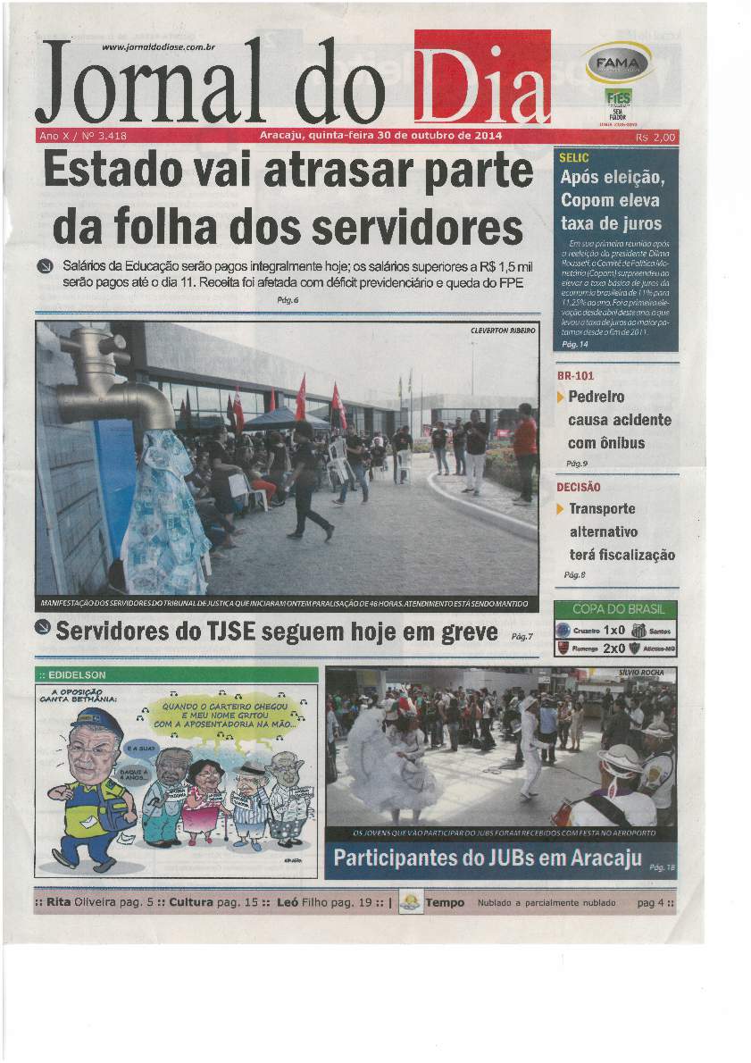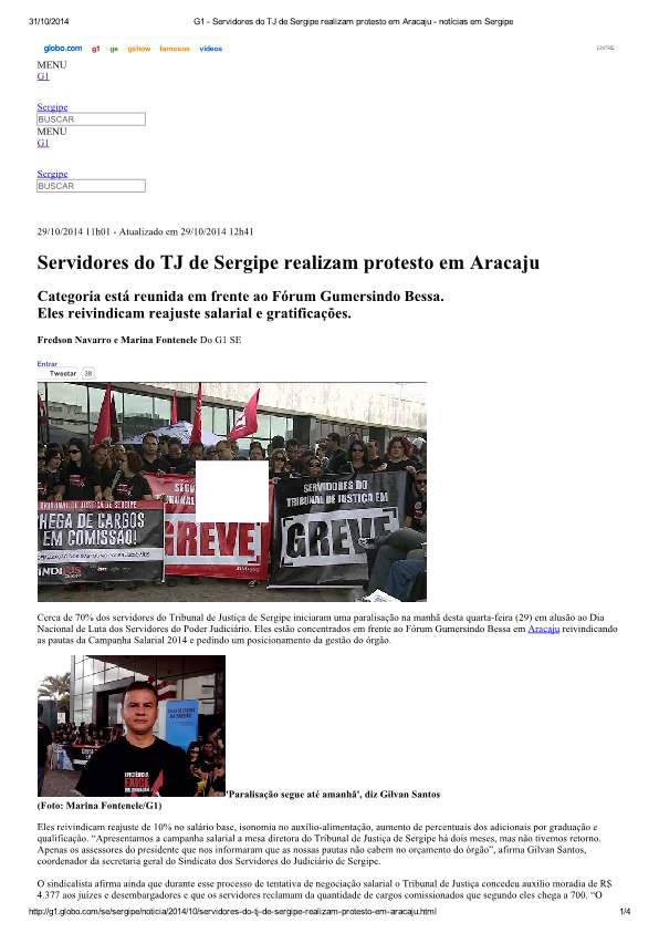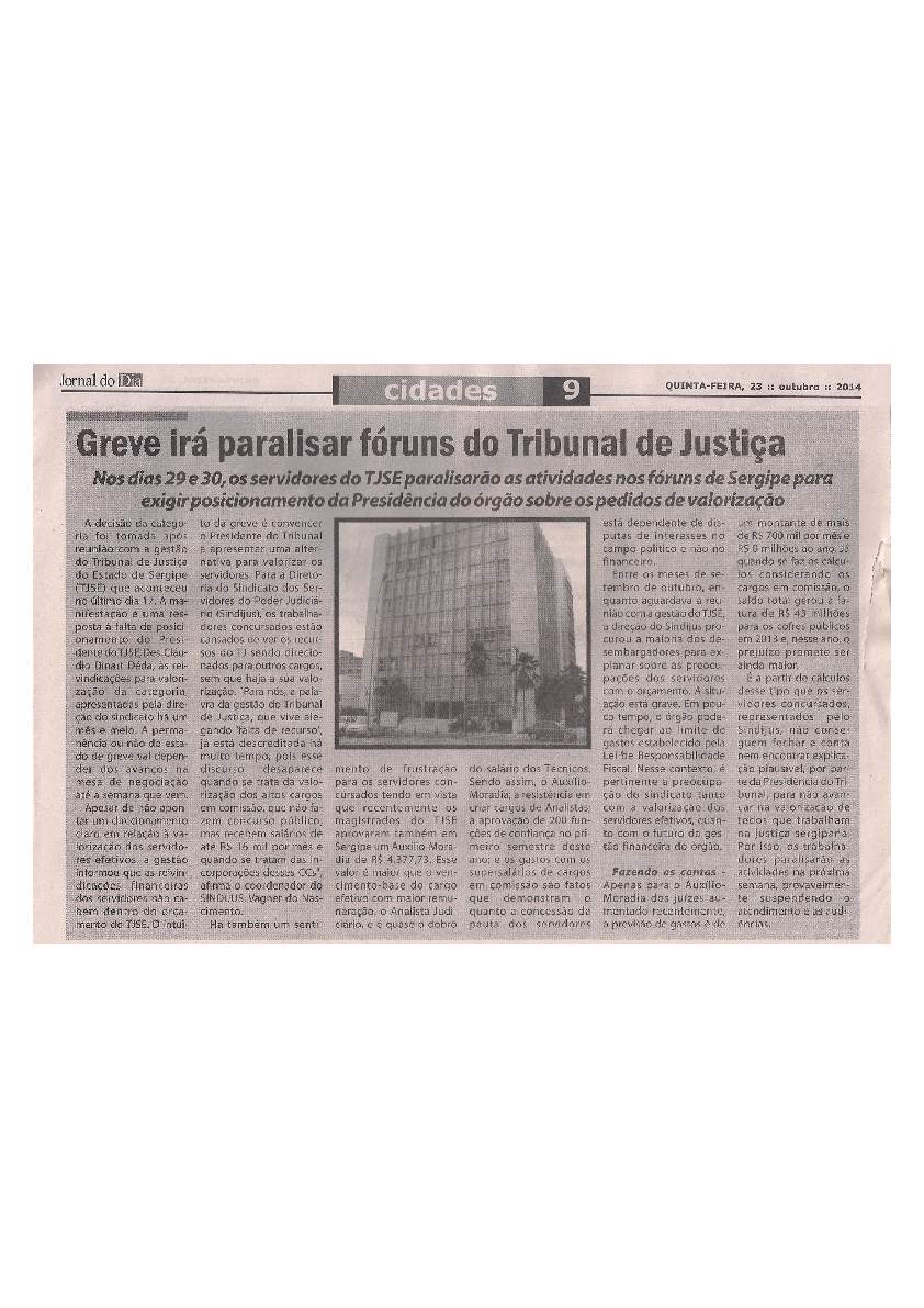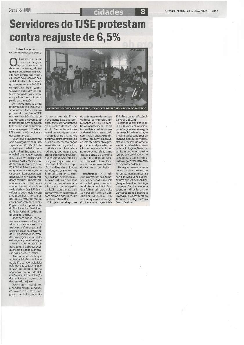 Nos dias 29 e 30 de outubro, toda a imprensa sergipana é levada a cobrir a paralisação dos servidores do TJSE, impulsionada pela repercussão negativa que a aprovação do Auxílio-Moradia estava tendo junto à população.
